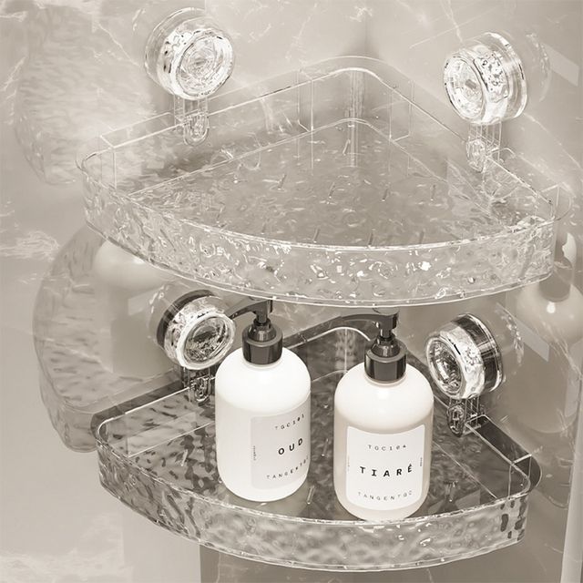 【吸盤系列】透明波紋浴室瓶罐收納架 三角款
