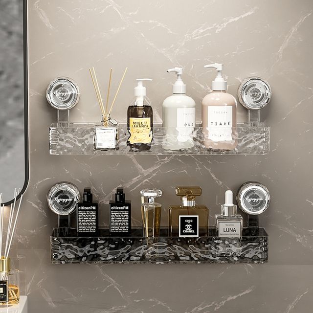 【吸盤系列】透明波紋浴室瓶罐收納架-四方款